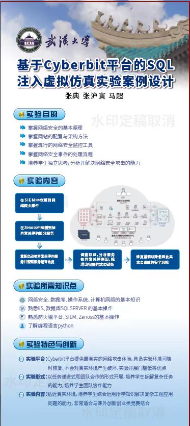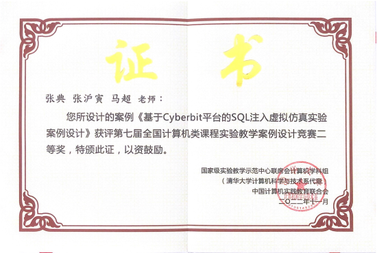 实验教学案例《基于Cyberbit平台的SQL注入虚拟仿真实验案例设计》获全国计算机类课程实验教学案例设计竞赛二等奖,该案例由脱衣秀