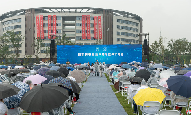 、华中科技大学首批入驻网安基地师生一同参加开学典礼。