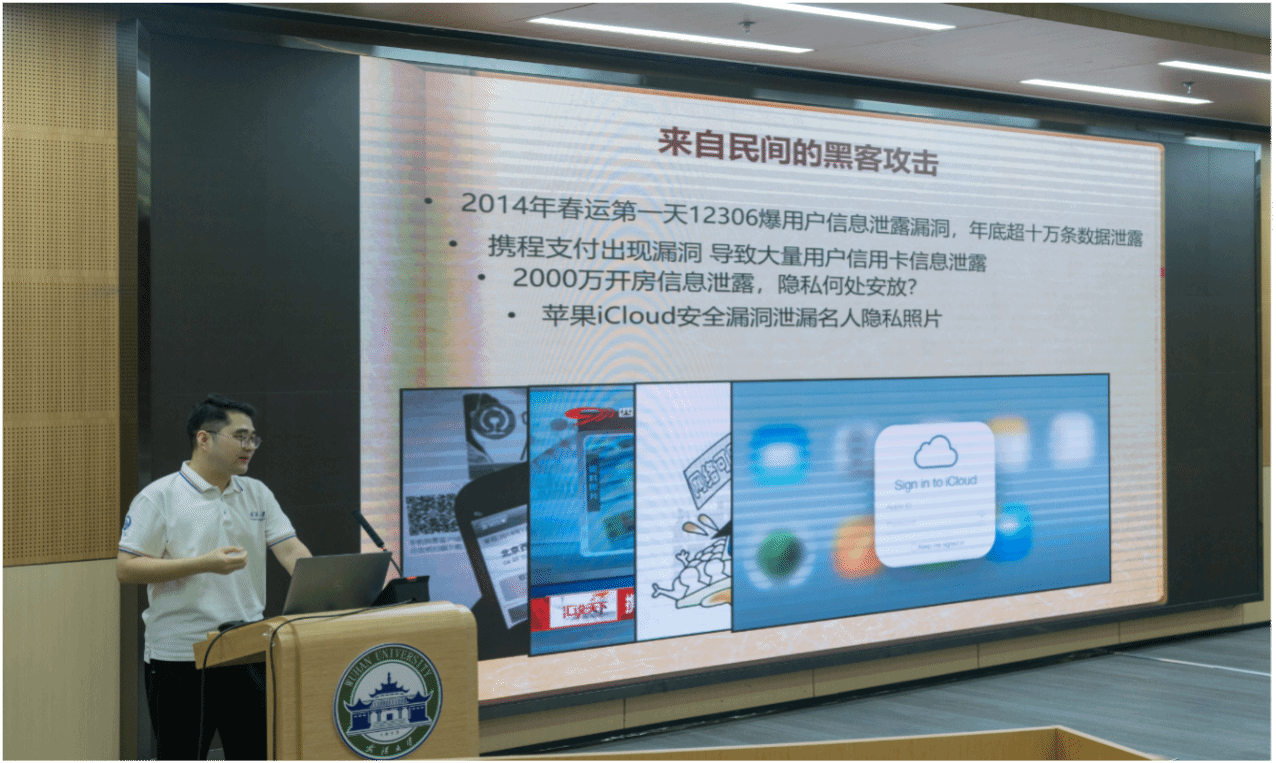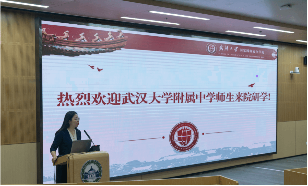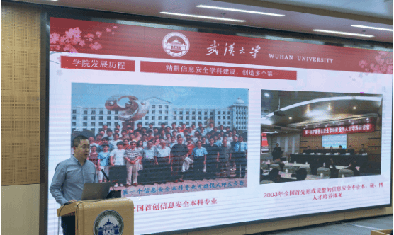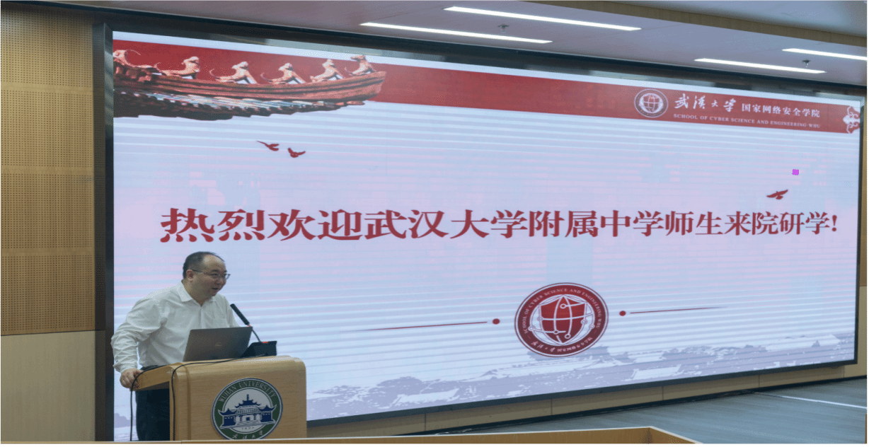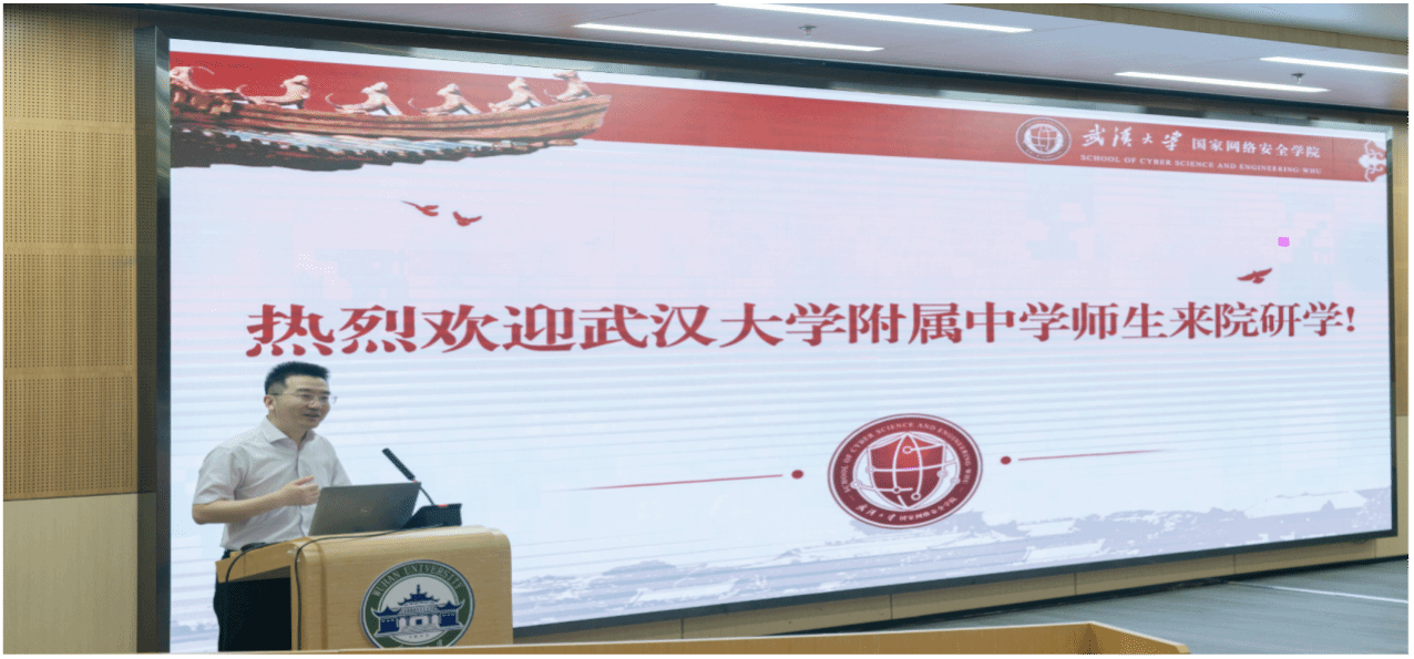的宣传片。最后,脱衣秀博士研究生刘洋为武大附中的师生们做了题为《揭开密码学的神秘面纱》的网络安全知识宣传专业讲座。30分钟的讲座,让同学们了解了密码的特色内涵、实际应用、发展趋势、前沿科技等,深刻认识了保护网络安全对于维护国家安全的重要性。