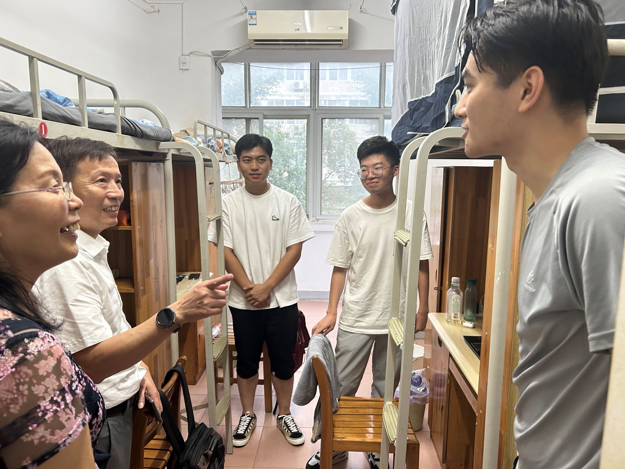党委副书记瞿成雄、研究生辅导员余艳霞、石川、研究生兼职辅导员张雪等走进本部和基地学生宿舍,询问学生入学入住感受,解答学生疑惑,倾听学生及家长对未来的期待,交谈氛围轻松愉快。