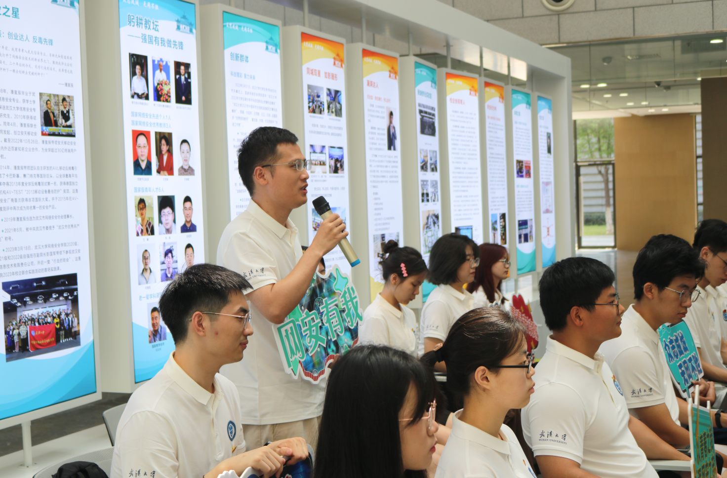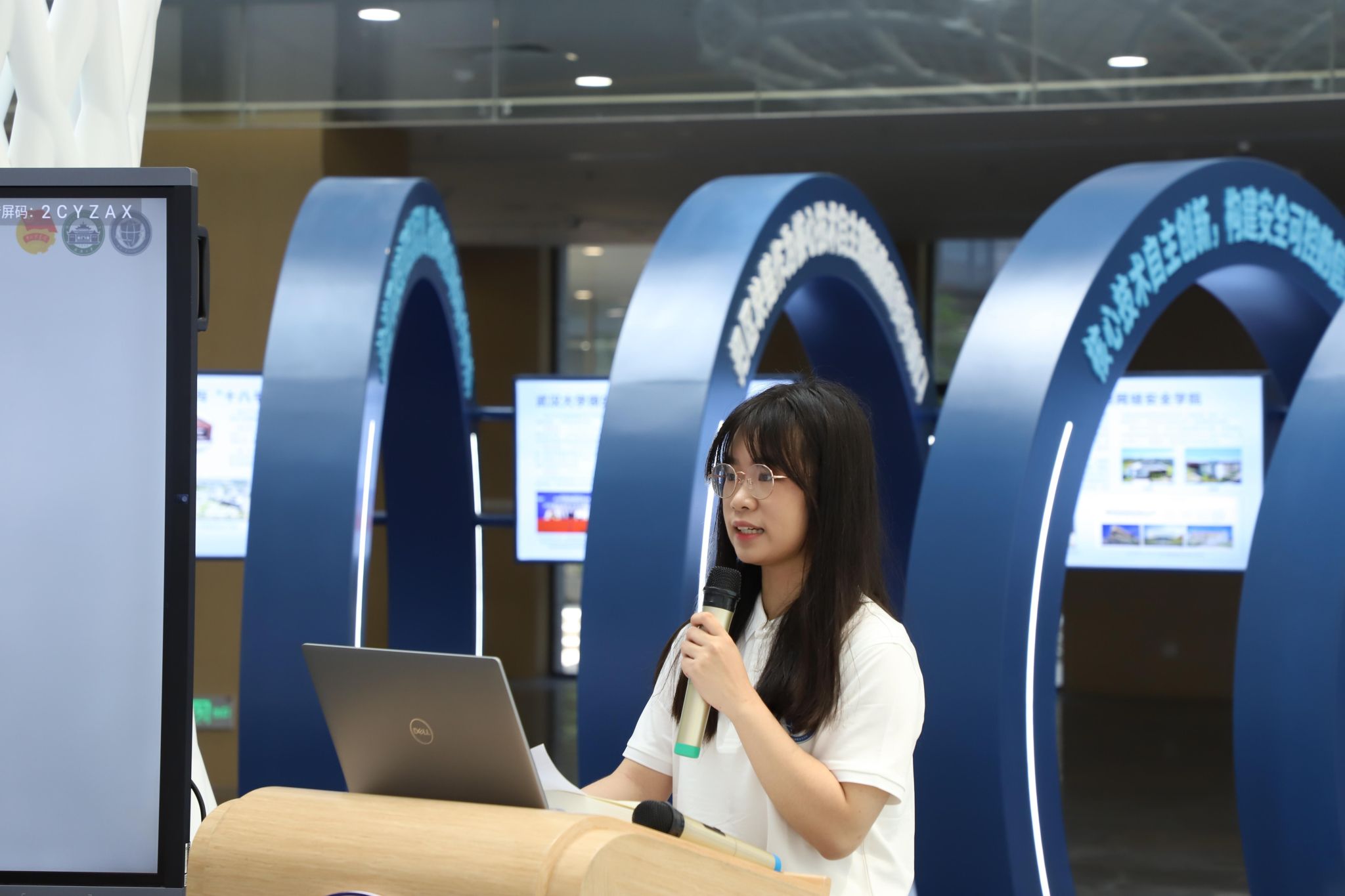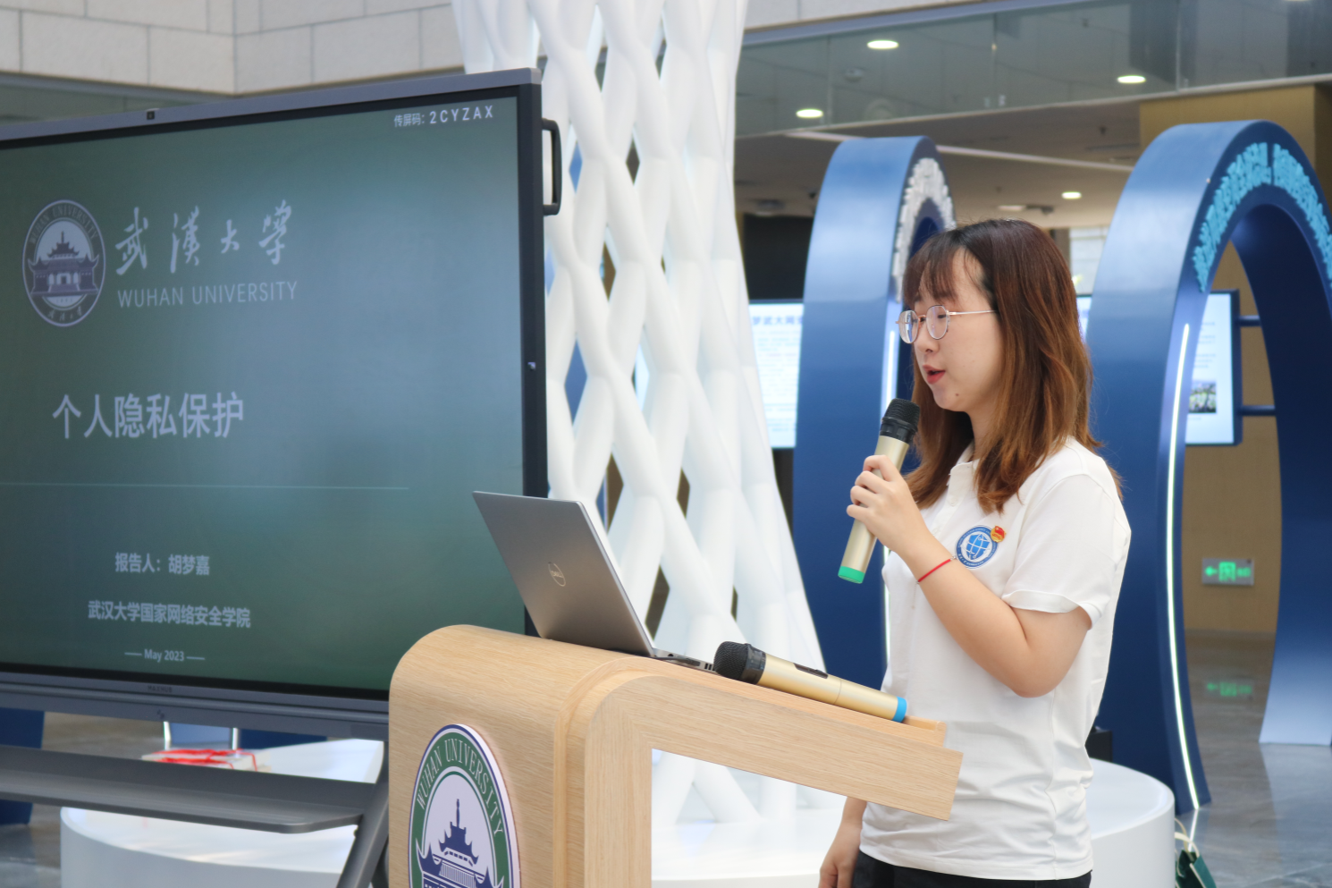 在脱衣秀新建成的新珈楼文化廊里,21级硕士研究生马文豪和22级硕士研究生胡梦嘉分别以“网络强国与青年使命”和“个人隐私保护”为题开展微团课,他们提出新时代网络强国建设路上,青年人的力量不可或缺,响应国家号召,构建文明、和谐的网络空间命运共同体,网安青年义不容辞。