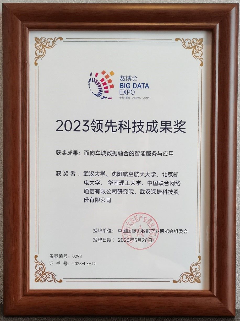 曹越教授牵头成果“面向车城数据融合的智能服务与应用”荣获“2023领先科技成果奖”,联合沈阳航空航天大学、北京邮电大学、华南理工大学、中国联通研究院、武汉深捷科技产学研合作,面向“智慧城市和智能网联汽车融合发展”双智协同发展目标,搭建了面向车城数据融合的智能服务数据融合平台,赋能智能交通的协同、效率、安全、规范、低耗需求——搭建5套创新应用平台:面向5G城市道路交通及人流洞察分析平台、面向RFID标识的物流供应链数据管理平台、面向多维聚合的车联网信任评估检测平台、面向车联网V2X的数字孪生功能检测平台、面向双碳背景的数字孪生静态泊车管理平台。2021级博士生侯英哲为本获奖项目主要骨干。