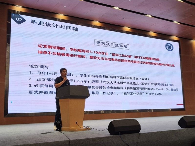 随后,重点强调了毕业论文(设计)开题、撰写、查重、答辩等环节的要求及注意事项,厘清毕业论文(设计)时间轴,要求充分重视毕业论文(设计),以认真投入、科学严谨、遵守规范的态度开展毕业论文(设计)。