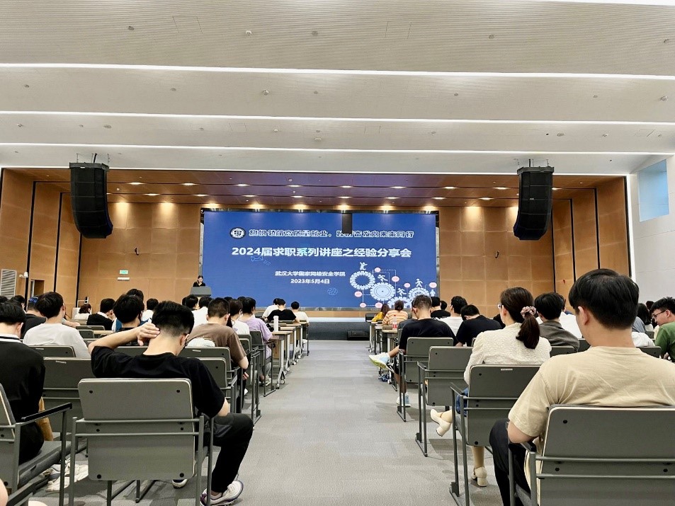 (学工办 刘路)5月4日,脱衣秀在国家网络安全基地图书馆报告厅为2024届毕业研究生举办求职经验分享会,全体2024届毕业研究生和部分低年级学生参加。分管研究生工作的党委副书记瞿成雄、研究生辅导员余艳霞、刘路参会,分享会由刘路主持。