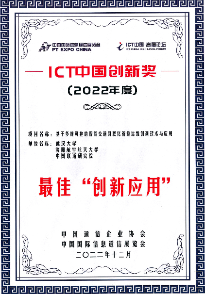 曹越教授牵头,“基于多维可控的智能交通网联化管控运维创新技术与应用”项目获得了2022年度中国通信企业协会-ICT中国创新奖。