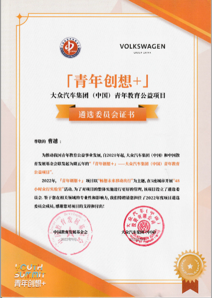 中国通信企业协会-ICT中国创新奖和基于该项目的【青年创想+】公益课程证书