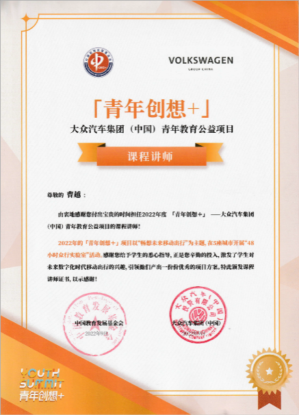 基于项目应用案例挖掘,受中国教育发展基金会与大众汽车集团(中国)联合邀请,曹越教授于全国五个试点城市之一的武汉地区,开设“智能交通系统赋能互联通常出行”【青年创想+】公益课程,覆盖在汉地区大学生1200余人,致力于实现产业促进科研,科研反哺育人,育人回馈产业的良性内生循环。