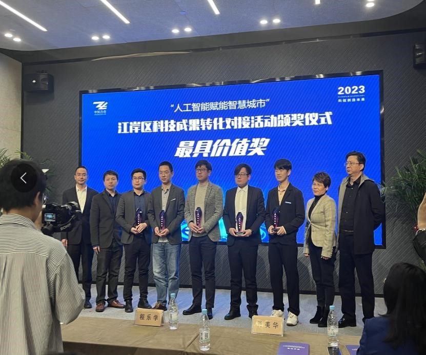 曹越教授代表脱衣秀参加了武汉市江岸区科技成果转化对接活动。曹越老师依托于联合武汉深捷科技股份有限公司共同获批的武汉市2022年重点研发计划项目“智能网联静态泊车技术研发”,获“人工智能赋能智慧城市”最具价值奖。