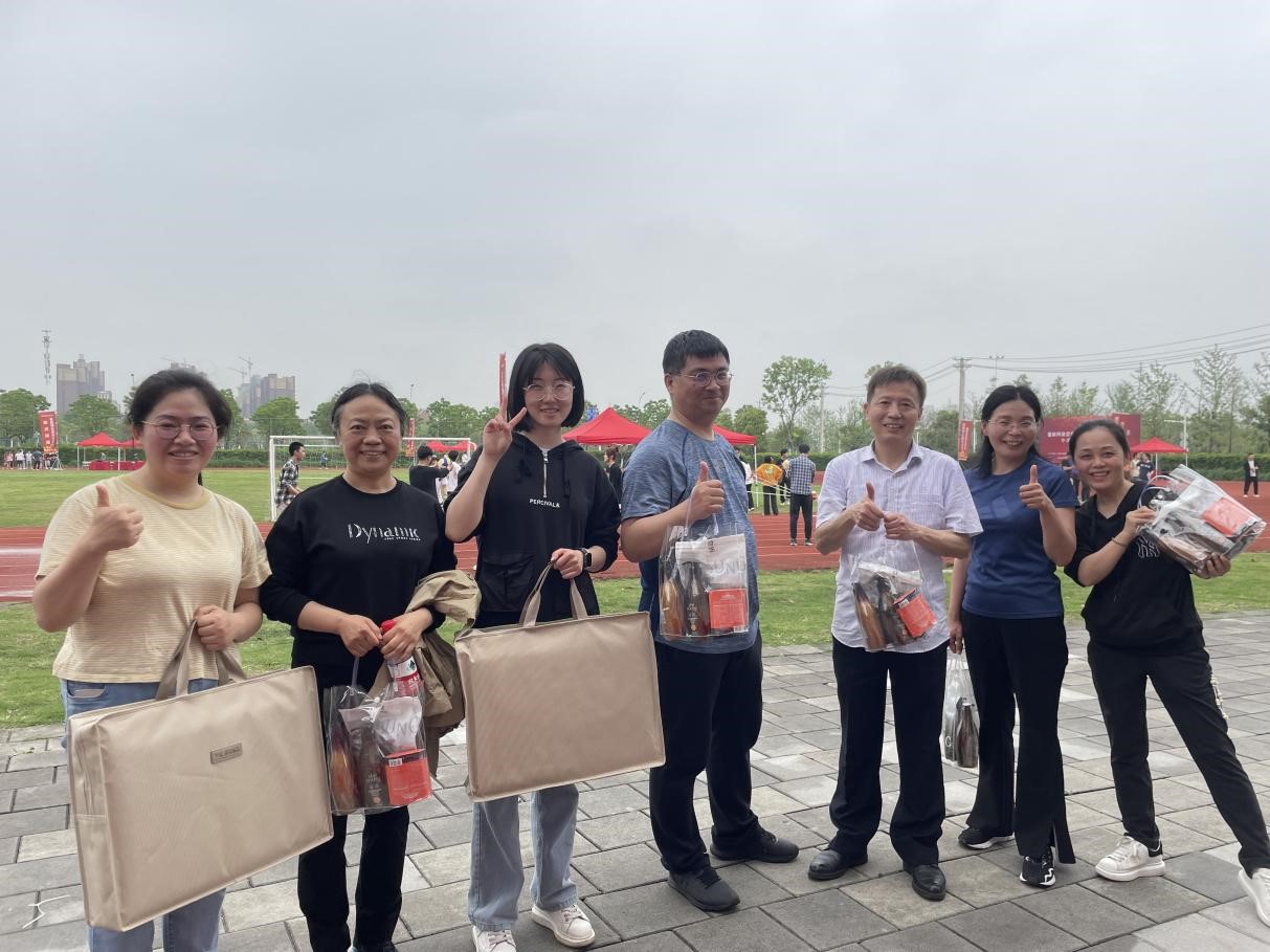 运动会结束后,参与运动会的师生凭参赛积分卡领取了丰厚的奖品。