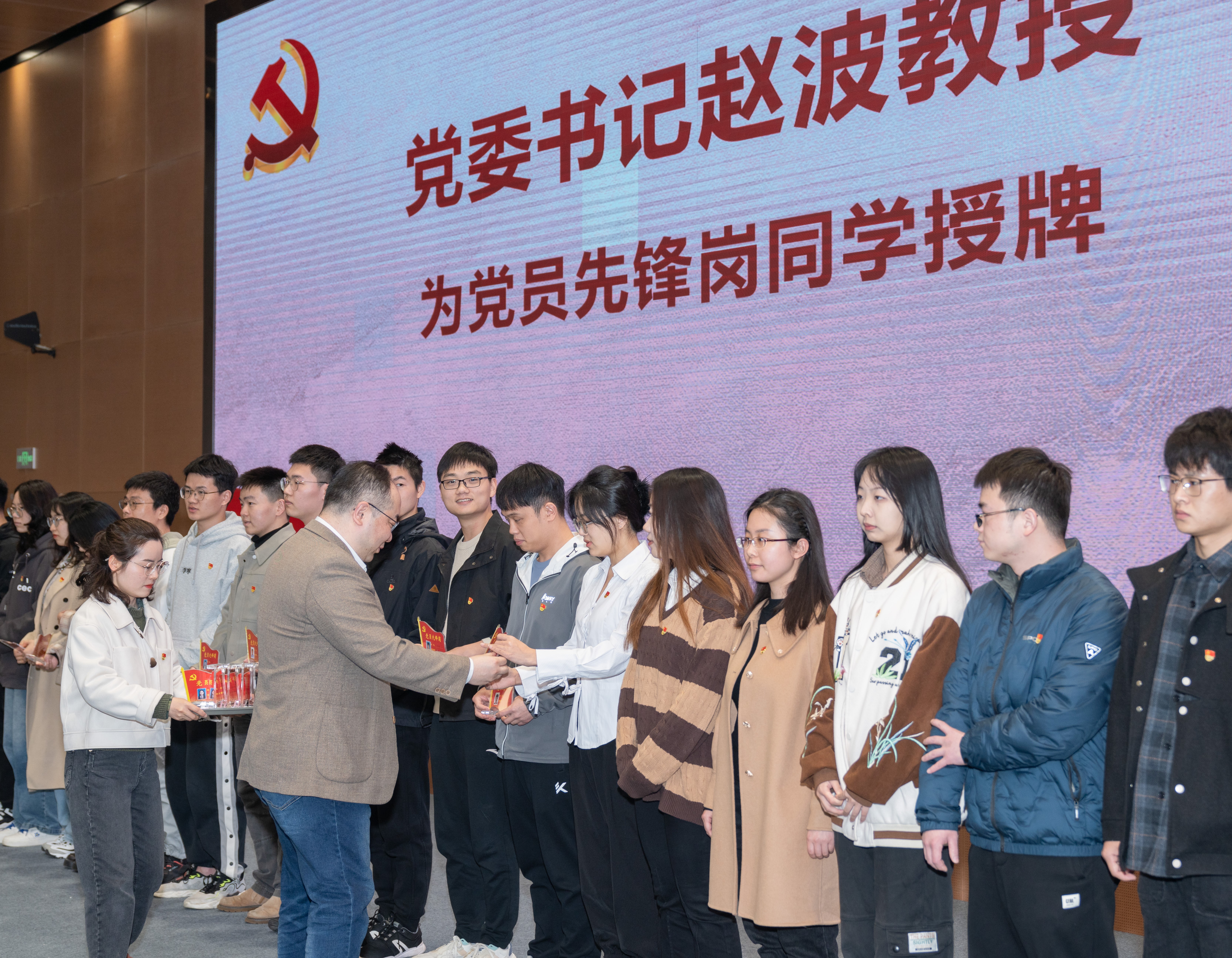 脱衣秀党委书记赵波教授为党员先锋岗同学授牌