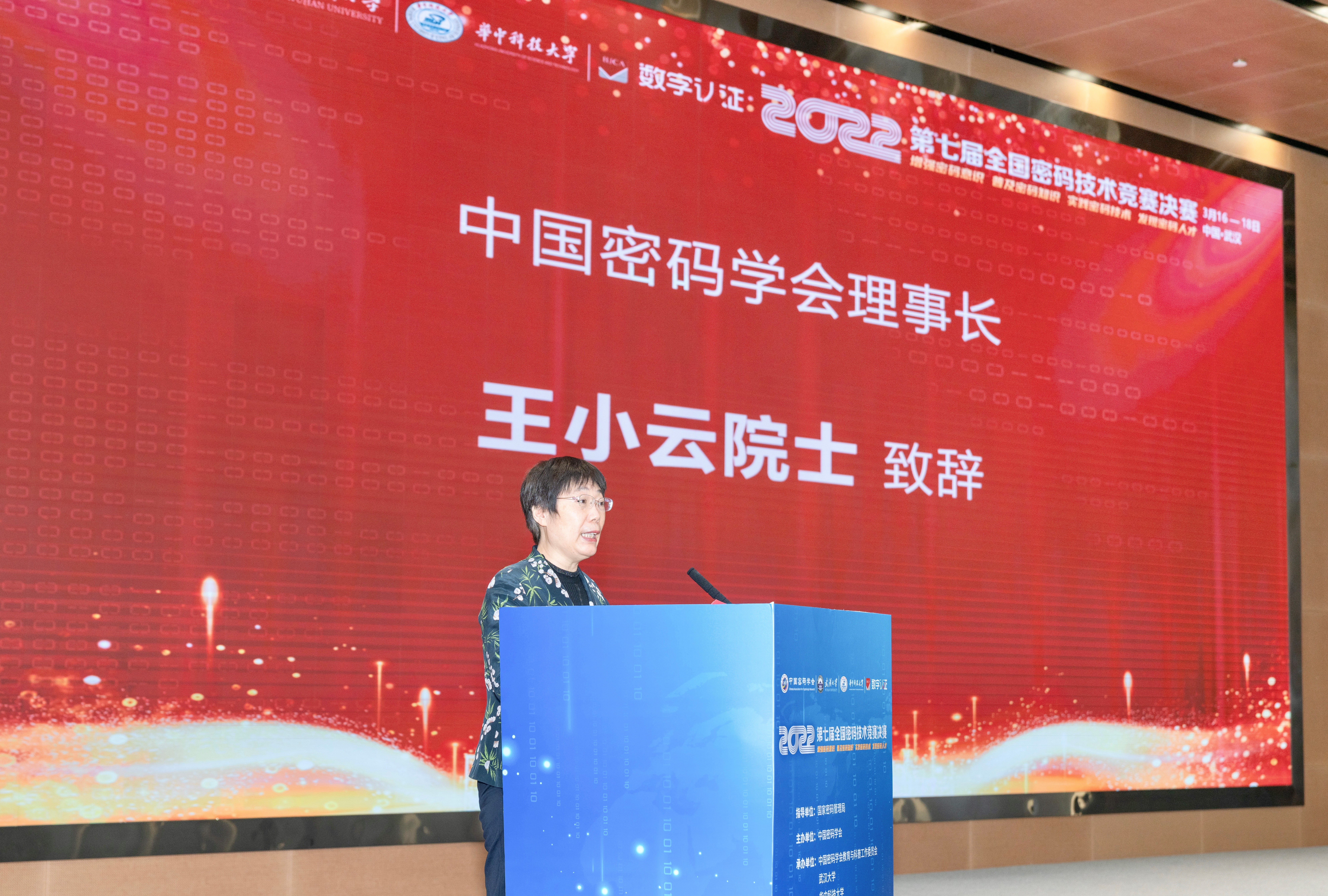 中国密码学会理事长、中国科脱衣秀院士王小云讲话。她指出,必须要牢记密码为国家服务的原则,重视基础研究的重要价值,切实将密码技术应用到国家和社会的重大需求中。王小云院士鼓励年轻老师和学子们:“你们处在历史上的最好时期,你们一定要勇于成为科技创新的‘排头兵’,不负青春,不负韶华!”