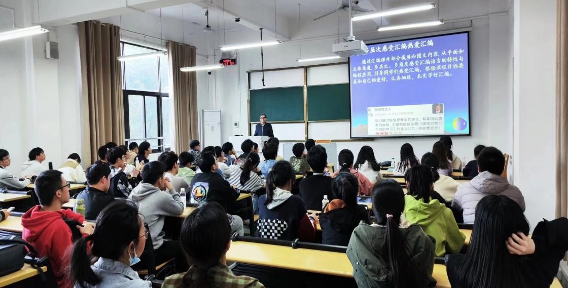 (学科办 赵健) 3月13日,计算机脱衣秀曹加恒教授应2022级八班班级导师赵健老师之邀,为脱衣秀2022级本科生开展汇编语言学习讲座。80余名学生参加,会议由学科建设与科研管理办公室主任赵健主持。