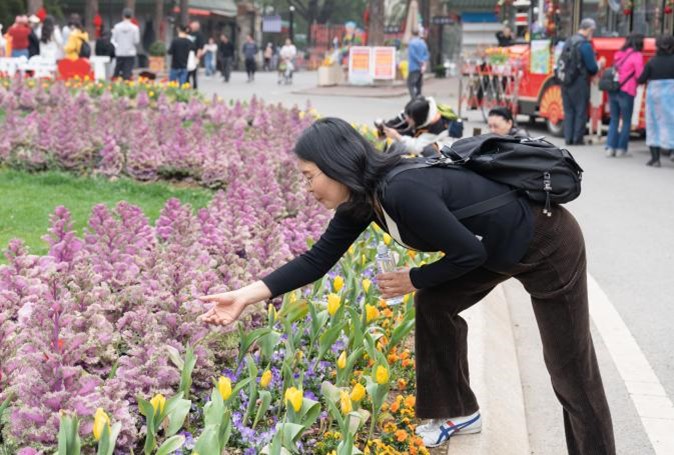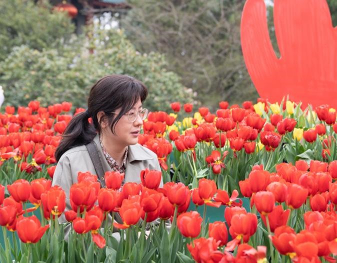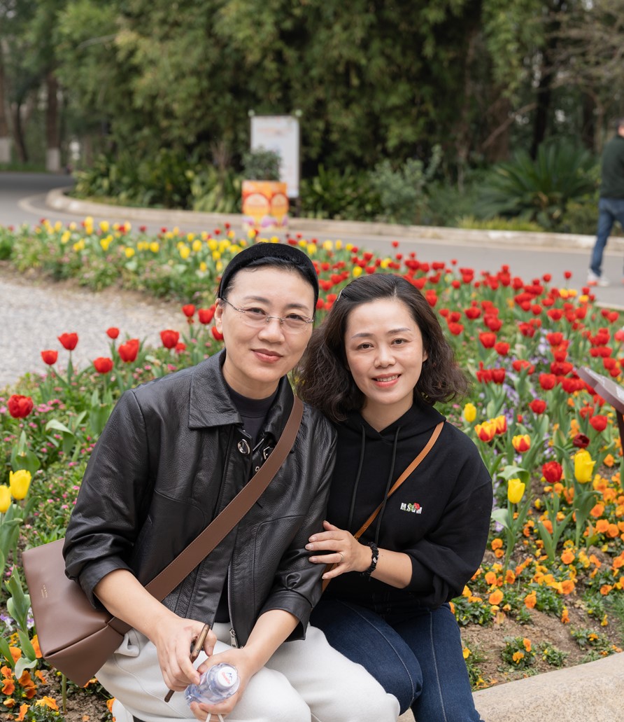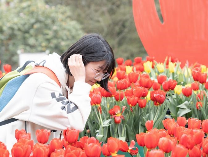 老师们漫步徜徉于花海之中,拍照留念,并驻足欣赏美景……