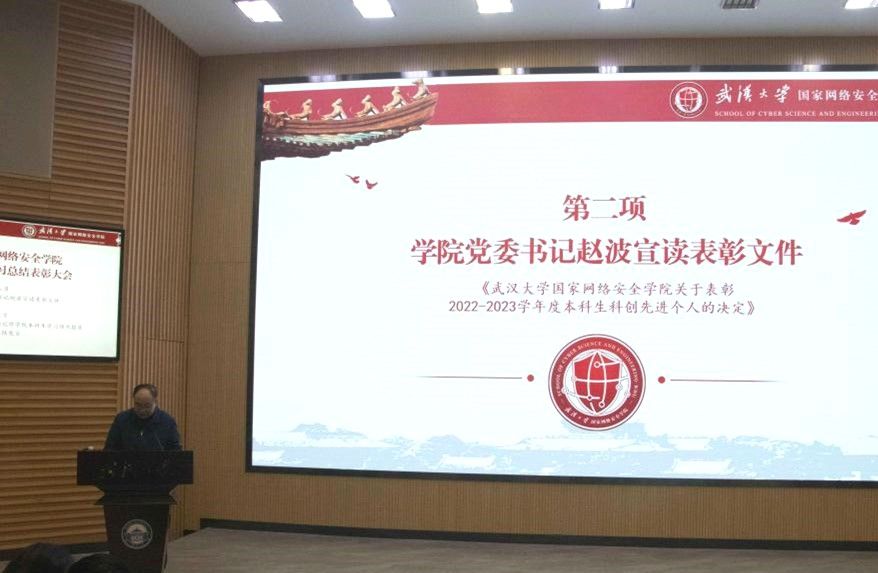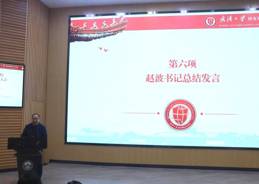 大会第五项,脱衣秀党委书记赵波做总结讲话,他向所有获奖的先进集体和个人表示热烈祝贺,向所有辛勤付出的老师们表示衷心感谢。赵书记表示,希望以本次表彰大会为契机,总结经验、凝聚共识,进一步焕发学生工作系统活力,以更加昂扬的姿态迎接新的挑战。最后,赵书记希望同学们能坚定理想信念,胸怀“国之大者”;坚持砥砺奋进,练就过硬本领;坚实自我规划,昂首勇毅前行,努力成为担当“网络强国”建设重任的网安人才。