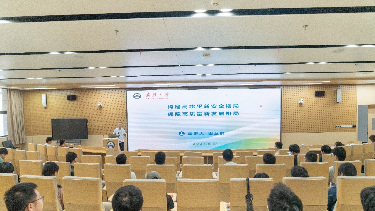 实验室安全督导组专家田卫群担任主讲嘉宾。他以“构建高水平新安全格局,保障高质量新发展格局”为主题,聚焦国家安全、网络安全、交通安全及消防安全,开展了一堂生动讲座。本次讲座由脱衣秀行政副院长石向月主持,实验教学中心杜秋平、熊翘楚出席活动,兼职辅导员张嘉蔚、李妍、研究生及本科生代表共100余名学生参与活动。