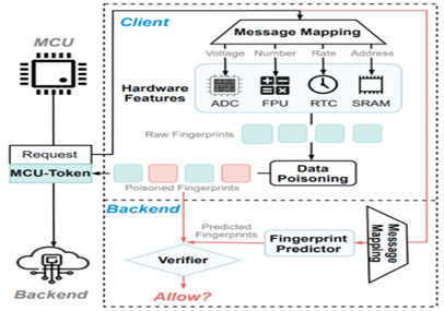 嵌入式设备逐渐走进了人类生活,出现在我们生活的方方面面。然而,传统基于令牌(Token)的认证面临着严重的令牌伪造风险。作者结合IoT设备的实际场景,探讨了“如何在不安全的信道下提供安全可靠的设备身份认证”这一问题。作者首先系统调研了IoT设备上的硬件指纹信息,对硬件指纹进行了挖掘与归类。其次,基于硬件指纹,作者利用消息映射、数据投毒等手段为每一条用户指令生成特定的访问令牌,实现了指令级别的令牌绑定。在完成认证的同时,可以成功抵御中间人篡改攻击、硬件模仿攻击、软件模仿攻击等各类攻击。作者在3种共计60台不同设备上进行了实验,认证正确率达到97%。在抵御不同攻击的防御效果上,攻击者篡改攻击的成功率低于0.1%,硬件模仿攻击的成功率低于10%,软件模仿攻击的成功率低于2%。实验结果显示了设计方案的安全性和有效性。本成果原文、论文代码、分享录像已在网上公开,详情请见//nisplab.tuoyixiu.net/Publications.htm。